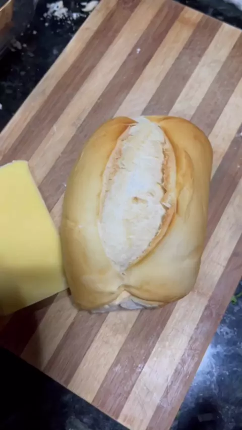 Corte o pão ao meio, amasse o miolo, adicione queijo e carne moída temperada! Leve ao forno e pronto! Rápido e delicioso! #euquando #meucampeao #Receita #receitaboa #receitafacil