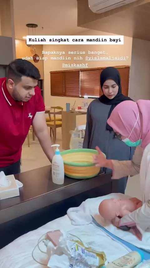 miskah dan ka yislam belajar buat mandiin dede bayi nanti🥰 #miskah #yislamjaidi #fadiljaidi #Artis #berbagiinfo