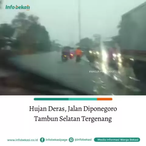 Hujan deras mengguyur kawasan Tambun Selatan dan sekitarnya, Kamis petang, (13/10/2022). Sejunlah jalan dan perumahan tergenang. Di Jl Diponegoro, depan Bulog, genangan air 20 cm di dua jalurnya. (Saban)#infobekasi#masukinfobekasi#jaditahubekasi