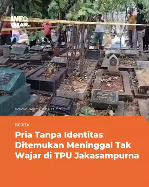 Mayat pria tanpa identitas ditemukan di area Tempat Pemakaman Umum (TPU) di Jalan KH Noer Ali, Kelurahan Jakasampurna, Kota Bekasi, Minggu (11/1/2026) siang. Penemuan jasad tersebut dilaporkan sekitar pukul 13.00 WIB. Kasat Reskrim Polres Metro Bekasi Kota AKBP Braiel Arnold Rondonuwu menyampaikan, korban ditemukan dengan kondisi leher terjerat ikat pinggang. Polisi masih mendalami identitas korban serta penyebab pasti kematiannya. Dari hasil pemeriksaan awal, petugas menemukan sejumlah luka le...