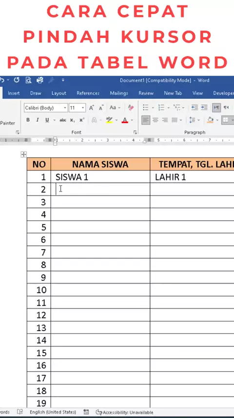 203CARA CEPAT PINDAH KURSOR DI TABEL MS WORD
