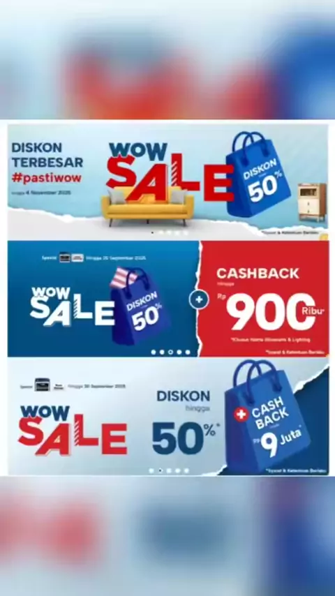 "Breaking News! WOW Sale INFORMA Diskon hingga 50%* Diskon terbesar furnitur & aksesoris rumah,#pastiketemu di WOW Sale INFORMA : - WOW Diskon hingga 50%* - WOW Beli 1 Gratis 1 - WOW Harga Spesial Produk Multifungsi & Hemat Ruang - WOW Pasti Termurah Khusus member INFORMA Rewards dan pengguna bank partner juga bisa dapatkan: ✨ Diskon hingga 50%* + Cashback hingga Rp 900 Ribu* untuk produk aksesoris rumah & lighting ✨ Diskon hingga 50%* Cashback hingga Rp 9 Juta* produk furnitur Ikuti juga k...