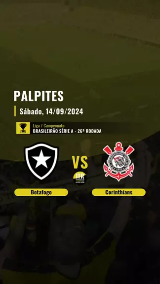 Palpites BOTAFOGO x CORINTHIANS: às 21:00 (horário de Brasília) deste sábado (14/09), jogo da 26ª rodada do Brasileirão Série A. 🔔 Curta / siga o perfil para receber informações sobre os jogos do Botafogo. #Botafogo #PalpitesJogoDoBotafogo #JogoDoBotafogo #JogoDoBotafogoHoje #NotíciasDoBotafogo