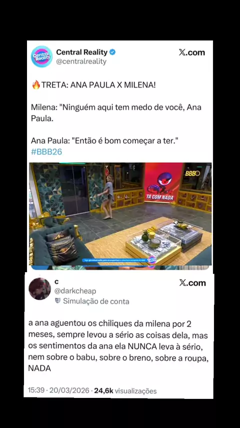 Milena realmente tá alfinetando a Ana, não para de falar coisas que Ana já avisou várias vezes que machuca ela. #BigBrotherBrasil2026 #anapaularenault #bbb26 #bbb #teamrenault .