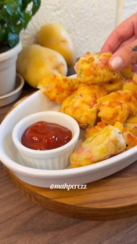 Bolinho de Batata com Queijo e Presunto 🧀🥔 Rápido, fácil e muito gostoso! Você vai precisar: 3 batatas médias 100g de queijo mussarela ralado 100g de presunto picado Sal, pimenta e salsinha a gosto Como fazer: Fure as batatas e leve ao micro-ondas por cerca de 5 minutos, até ficarem macias. Deixe esfriar, descasque e amasse. Misture o queijo, o presunto e os temperos. Faça os bolinhos e leve para a airfryer a 180°C por 15 minutos, até dourar. Pronto! Crocante por fora e cremoso