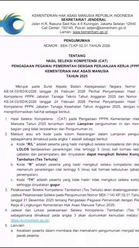 Pengumuman udah ada, absen yang lolos dong!! #tryoutpppkKemenham #infokemenham #pppkkemenham #skttkemenham