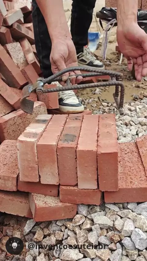 Isso aqui facilita MUITO o trabalho com tijolo. Menos esforço, mais precisão e zero frescura. Gambiarra raiz que funciona de verdade 👌 #invençõesúteis #construção #ferramentasimples #obra #engenharia