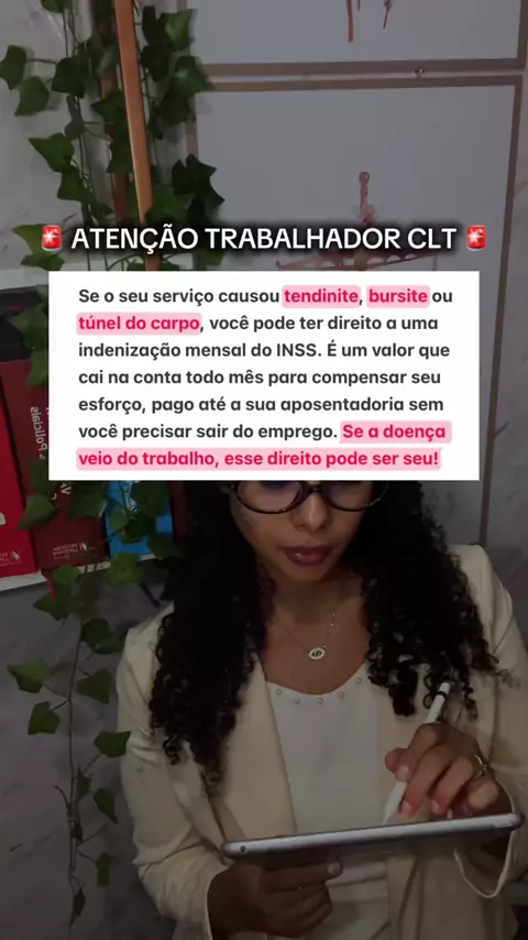 Quase ninguém sabe disso 😱⚠️ Tendinite, bursite ou túnel do carpo causados pelo trabalho podem dar direito a indenização do INSS — mesmo sem afastamento 💰 Não precisa ficar totalmente incapaz ❌ Basta ter sequela/limitação e provar o nexo com o trabalho 📄 Pode receber junto com o salário 👀 Salve 📌 Compartilhe 🤝 Siga para entender seus direitos ❤️ #tendinite #bursite #inss #auxílioacidente #direito