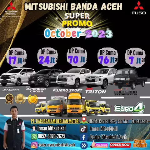 Dealer Resmi Mitsubishi Aceh Melayani pembelian cash/kredit all tipe : - New pajero sport - New triton - New Xpander - Fuso - Canter colt diesel - L300 Hubungi : Irman Mitsubishi ☎️ 0852-6070-2625