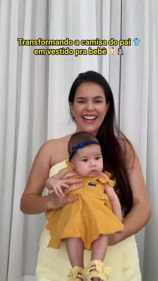 Transformando a camisa 👕 do pai em conjunto pra bebê 🤰🏻 Envia pro teu marido pra saber se ele vai querer que tu economize assim 😂😂 #Tutorial #customizacao #dicas #gravidez #Mae