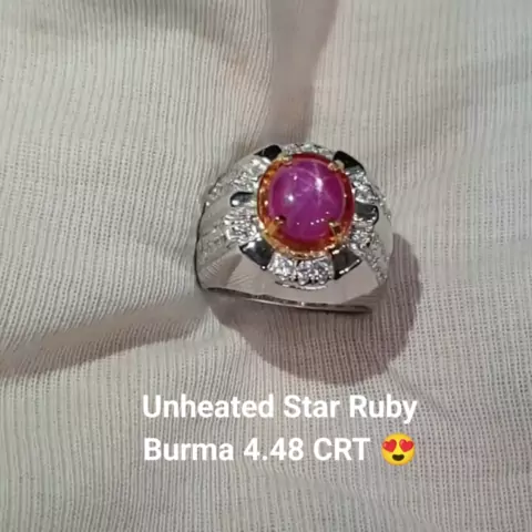 Natural Star Ruby Burma no heated Weight. : 4.48 crt Dimensi. : 9.49 x 8.36 x 5.02 mm Cut. : Cabochon Shape. : Oval Color. : Pinkish Red Comment : No Indication of thermal treatment Origin. : Burma Memo. : GRI Lab Ring. : Silver Wa 087852277800 Link video https://youtu.be/1I6FLyoi8EI?si=ps7BMsho_e7PTiTg Minat langsung chat aja #vividroyalbluesapphire #royalbluesapphire #bluesapphirestar #yellowsapphire #orangesapphire