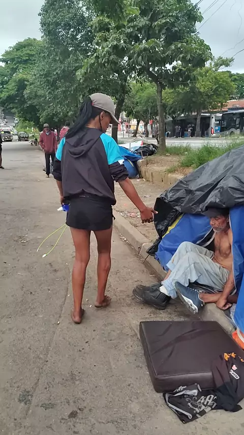 ele estava pegando salgado #e dentro do saco de lixo #para você ver como que é a fome #em nome de Jesus #glória a Deus #amém
