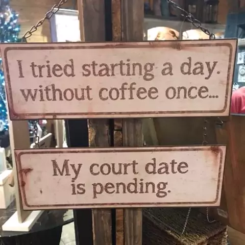 Learning English with Internet Stuff. Humor. “I tried starting a day without coffee once… My court date is pending.” #ingles #aprenderingles #falaringles #humor #cafe