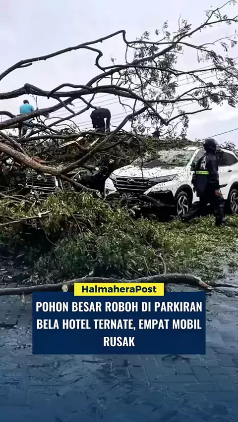 Hujan deras yang disertai angin kencang melanda Kota Ternate sejak siang hingga sore hari, Senin (12/1/2026). Cuaca ekstrem tersebut memicu insiden pohon tumbang di kawasan Ternate Selatan, tepatnya di area parkiran Bela Hotel Ternate, Kelurahan Jati. Peristiwa itu terjadi sekitar pukul 15.05 WIT, saat intensitas hujan masih tinggi. Sebuah pohon berukuran besar tiba-tiba roboh dan menimpa empat unit mobil yang sedang terparkir di lokasi tersebut. Akibatnya, sejumlah kendaraan mengalami kerusaka...