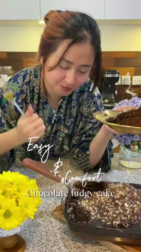 Chocolate fudgy cake 3 eggs 1 tsp vanilla extract 1 cup brown sugar Whisk medium speed 1 cup lukewarm milk 1/4 cup butter 1/2 cup oil Whisk again 1 tbsp cacao powder 1,5 cups flour 1,5 tbsp baking powder 1/2 tsp sea salt Bake 140c for 30-40mins For the fudge: 1 chocolatemilk bar A pinch of sea salt 1 tbsp butter Au bain marie Crush almond and mix together#chocolatecake#sunday#activity#baking#madewithlove#fudgycake#dessert