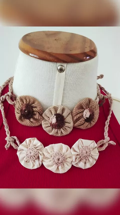 Choker com fuxico e toque em crochê! By: Iva Souto - Designer de Moda @chique_e_ser #handmade #AmorAoTrabalho #feitoamão #modacomproposito