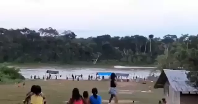 Americanos abrindo fogo contra embarcação de garimpeiros no Rio uraricoera