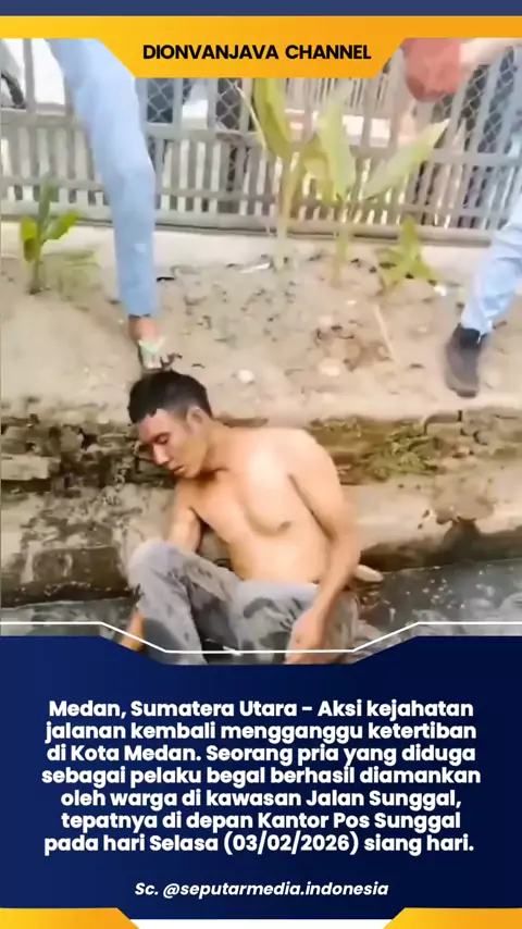 Medan, Sumatera Utara - Aksi kejahatan jalanan kembali mengganggu ketertiban di Kota Medan. Seorang pria yang diduga sebagai pelaku begal berhasil diamankan oleh warga di kawasan Jalan Sunggal, tepatnya di depan Kantor Pos Sunggal pada hari Selasa (03/02/2026) siang hari. #begal #Medan #massa #News