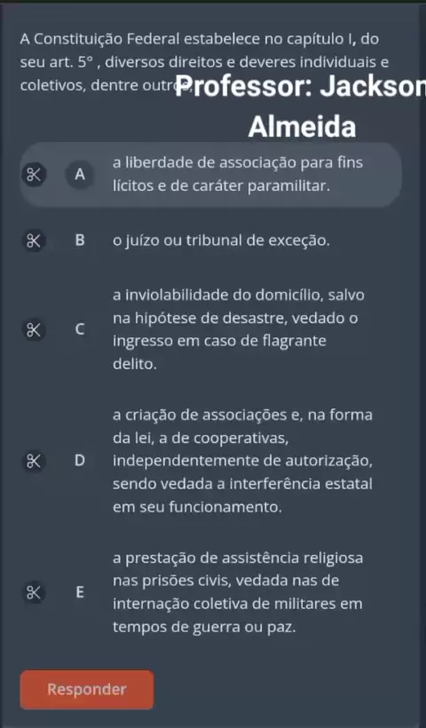 Questão de direito constitucional ART 5° da constituição federal de 1988 #art5 #constitucional #constituicaofederal #concurso #policial