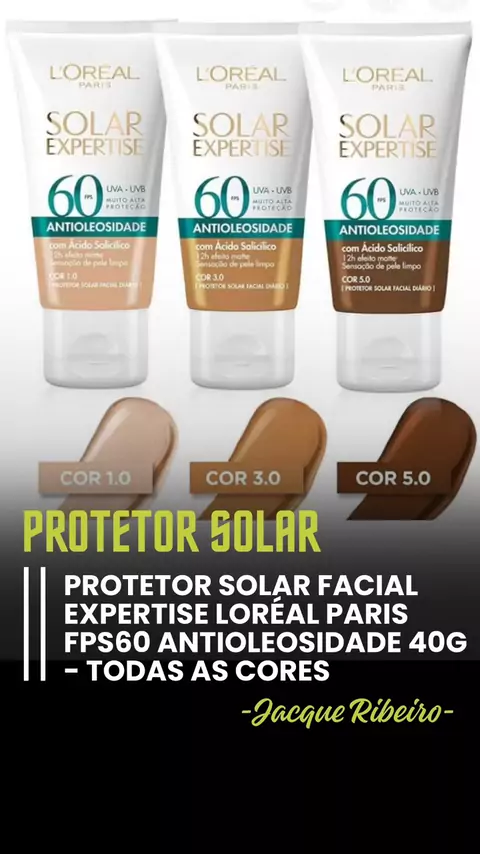 https://collshp.com/jacqueribeiro Protetor Solar Facial Expertise Loréal Paris FPS60 Antioleosidade 40g - Todas as cores