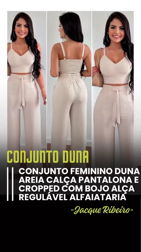 https://collshp.com/jacqueribeiro Conjunto Feminino Duna Areia Calça Pantalona e Cropped com Bojo Alça Regulável Alfaiataria