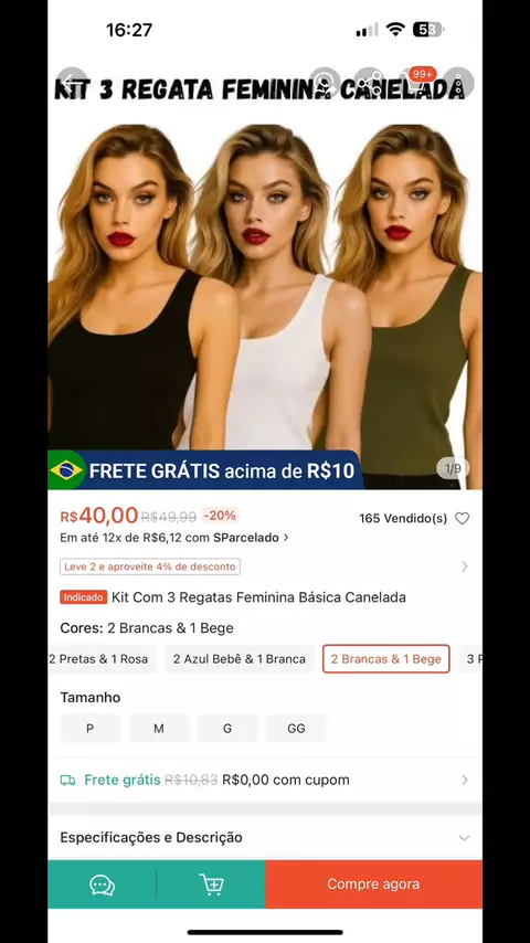 https://collshp.com/jacqueribeiro Kit Com 3 Regatas Feminina Básica Canelada