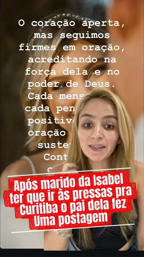 Pai de Isabel Veloso faz postagem após marido ir às presas para o hospital por ter notícia ruim 🥺💔