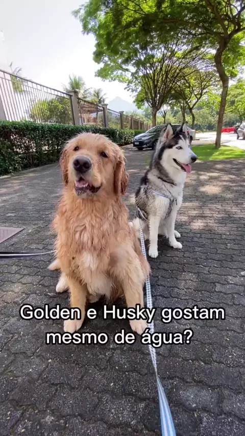 quase não gostam de água kkkk #viraliza #husky #goldens #petinfluencer #viral