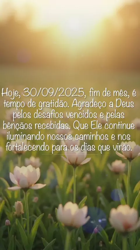 Hoje, 30/09/2025, fim de mês e momento de reflexões. Agradeça a Deus pelas bênçãos, pelas conquistas e até pelos desafios que nos fortalecem. Que Ele continue iluminando nossos caminhos com graça e pr