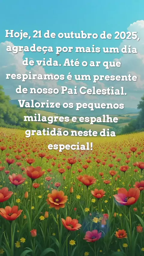seja grato por mais um dia de vida,pois ate o ar qie respiramos foi preparado pelo nosso Pai Celestial.