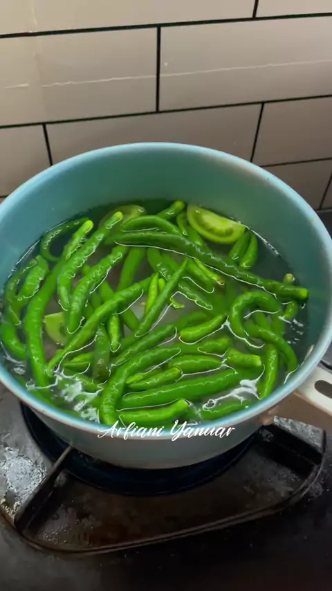 ✨Sambal ijo✨ Bahan-bahan: Bawang merah 6 siung Bawang putih 3 siung Cabe hijau keriting 100gr Cabe rawit hijau 15 buah Tomat hijau 2 buah Baking soda 1/2 sdt Daun jeruk 3 lembar Garam 1/2 sdt Micin 1/4 sdt Kaldu bubuk 1/4 sdt Gula 1/2 sdt #resepsambal #sambalhijau #sambalijo #sambalijopadang #resepsambalijo