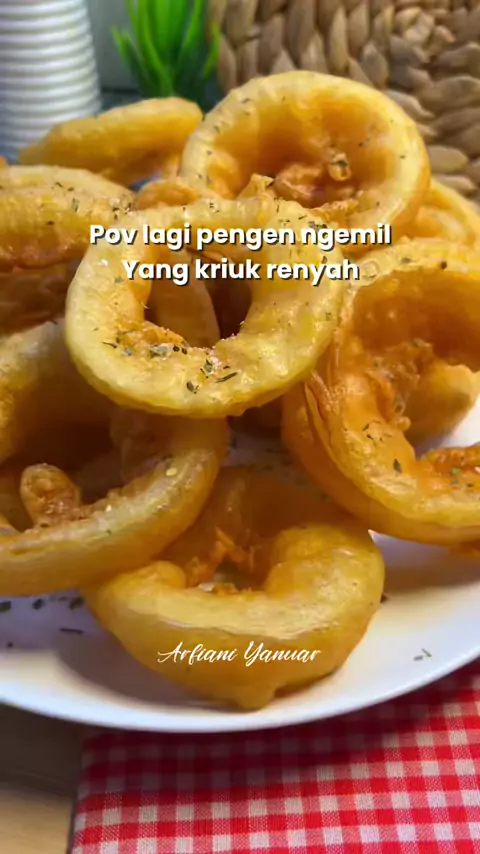 ✨Onion Ring✨ Bahan-bahan: Bawang bombay 1 buah (200gr) Tepung terigu 150 gr Maizena 30 gr Baking powder 1/4 sdt Garam 1/2 sdt Kaldu jamur 1/2 sdt Paprika bubuk 1 sdt Bawang putih bubuk 1 sdt Lada bubuk 1/4 sdt Air soda 230 ml #onionring #onion #bawangbombay #cemilan #cemilansimple