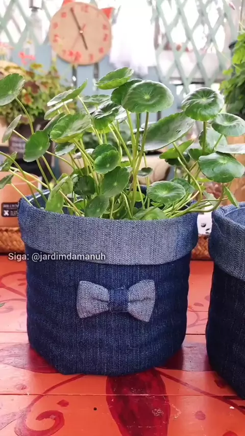 Criando vasos com calça jeans #jardim #planta #plantas #jardimemcasa #jardinagem