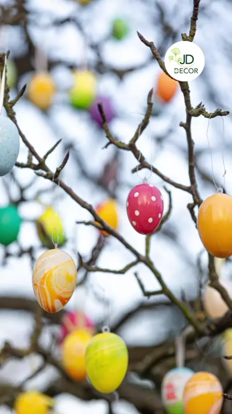 #decoração de páscoa #árvore de páscoa #osterbaum #decoração de páscoa simples #pascoa Descubra o que é a Osterbaum, a árvore de Páscoa que está conquistando as casas. Veja como fazer uma decoração elegante e simples para celebrar a Páscoa.