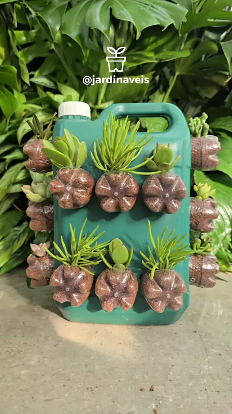 JARDIM PORTÁTIL DE SUCULENTAS feito com GARRAFA PET e GALÃO! #artesanato #facavocemesmo #reciclagem #vasodecorativo #DIY