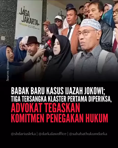 Titik balik dalam perjalanan panjang kasus dugaan ijazah palsu Presiden ke-7 Republik Indonesia, Joko Widodo. Tiga tersangka dari klaster pertama, yakni Rustam Effendi, Rizal Fadillah, dan Kurnia Tri Royani, memenuhi panggilan penyidik Polda Metro Jaya untuk menjalani pemeriksaan perdana. Di tengah sorotan publik yang kian tajam, kehadiran mereka didampingi oleh advokat Ahmad Khozinudin menjadi simbol perlawanan terhadap apa yang mereka sebut sebagai “kriminalisasi pelapor.” Salam keadilan, Adv...