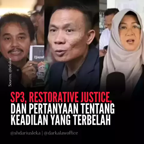 Kasus ijazah Jokowi yang melibatkan Roy Suryo, Cs bukan hanya persoalan politik atau opini publik, melainkan ujian bagi sistem hukum dan etika advokat di Indonesia. Permohonan SP3 yang diajukan menegaskan bahwa proses hukum harus berjalan dengan prinsip keadilan dan berdasarkan bukti yang kuat. Sebagai masyarakat yang sadar hukum, kita harus terus mengedukasi diri agar tidak terjebak dalam polarisasi yang merugikan. Salam Keadilan, Artikel ini ditulis oleh Darius Leka, S.H., M.H., - Advokat yan...