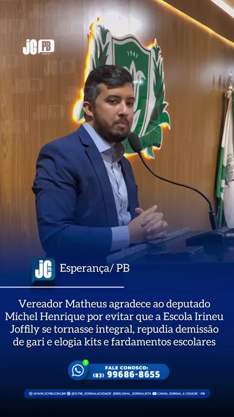 📻🎙️ Você na linha da informação! Sigam: @jcpb_politica Durante pronunciamento na Câmara Municipal, o vereador Matheus agradeceu ao deputado Michel Henrique pela atuação decisiva para garantir que a Escola Irineu Joffily não passasse a funcionar em regime integral, mantendo o modelo regular de ensino. O parlamentar destacou a importância da escuta à comunidade escolar e reconheceu o empenho do deputado na defesa dessa pauta. Em sua fala, Matheus também repudiou a demissão do gari Manuel