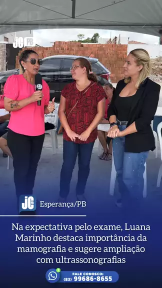 📻🎙️ Você na linha da informação! A ação de saúde realizada nesta quinta-feira (19), na Praça da Cultura, também foi marcada pela expectativa de quem aguardava a oportunidade de cuidar da própria saúde. Ao lado de Lídia Regina, integrante do Time do Bem, Luana Marinho falou sobre a importância da realização das mamografias no município. Animada com a iniciativa, Luana destacou que o acesso ao exame é fundamental para a prevenção e o diagnóstico precoce, beneficiando diretamente as mulheres d