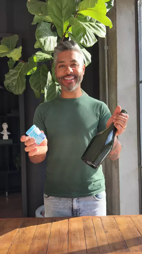 Transformei uma garrafa de espumante e itens do dia a dia em um castiçal com estilo vintage! 🕯️✨ Confira os materiais que usei: 🔹 1 garrafa de espumante 🔹 2 embalagens de fermento químico 🔹 Argolas de madeira 🔹 Pedaço de varão de cortina 🔹 Durepox 🔹 Tinta Decora Pinta Tudo – cor Navarro (@transfix_hobbyart ) 🔹 Stone Make – cores dourado, preto e marrom (aplicado com esponja) (@transfix_hobbyart ) 🔹 Mini porta-retrato de gesso (pintado de dourado) #diy #decor #HomeDecor #transformaçao