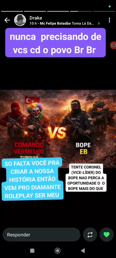 sou Jefferson Lima moro no interior da Paraíba sou comandante do BOPE do jogo diamante roleplay