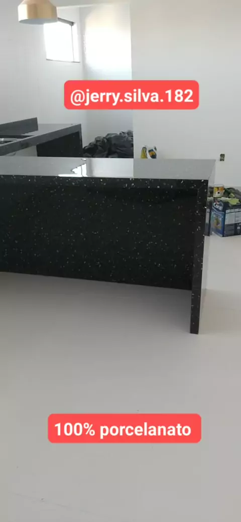 pia de cozinha com bancada toda trabalhada no porcelanato