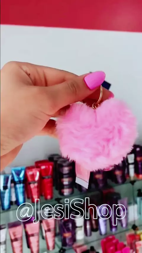 Chaveiro gloss glitter com pompom de coração.