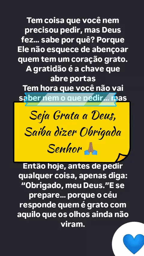 Obrigada Senhor por tudo que o Senhor faz, fez e ainda irá fazer 🙌🏽💙 Obrigada Aba Pai ✨ #fé #Jesus #Senhor #Deus #gratidão