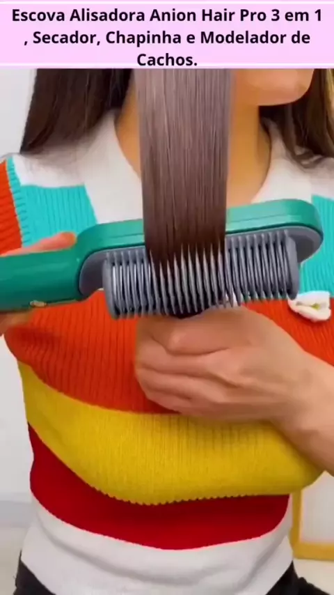 Escova Alisadora Anion Hair Pro 3 em 1 , Secador, Chapinha e Modelador de Cachos Bivolt