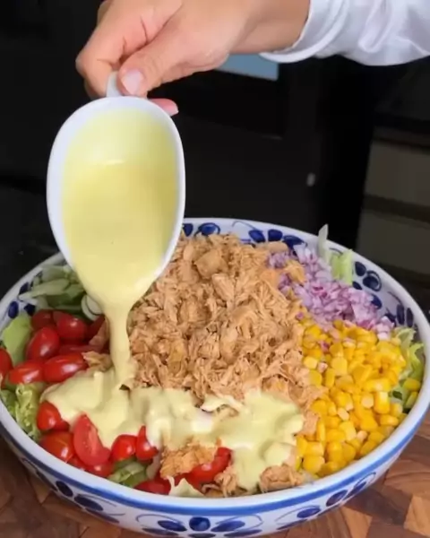 đŸ„™ SALADA PROTEICA COM FRANGO DESFIADO! Ingred da salada: 1 alface americana 1 xĂ­c de tomate cereja 1 lata de milho 1 pepino japonĂȘs 1/2 cebola roxa picada 300 gramas de frango desfiado 50 gramas de parmesĂŁo ralado Ingred do molho: 1 pote de iogurte natural 1 colh de sopa de mostarda amarela 1/2 limĂŁo espremido 1 colh de sopa de azeite 1 dente de alho picado 1/2 colh de cafĂ© de sal 1 colh de cafĂ© de parmesĂŁo ralado Modo de preparo no vĂ­deo! #receita #salada #saudĂĄvel #receitasalada #comida