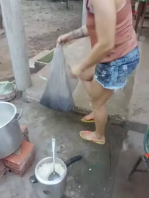 fazendo mingau de milho para a fogueira no final deu tudo certo ficou uma delícia.