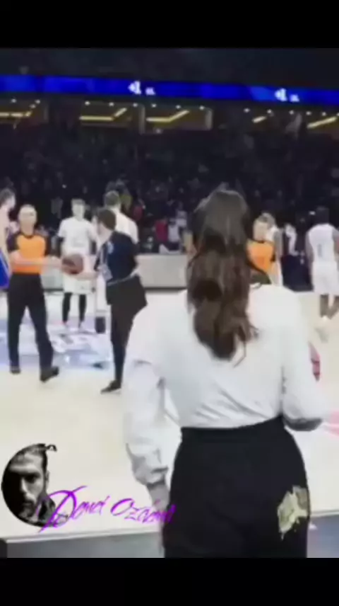 #Demet Ozdemir vai até a quadra e pega a bola de basquete e joga