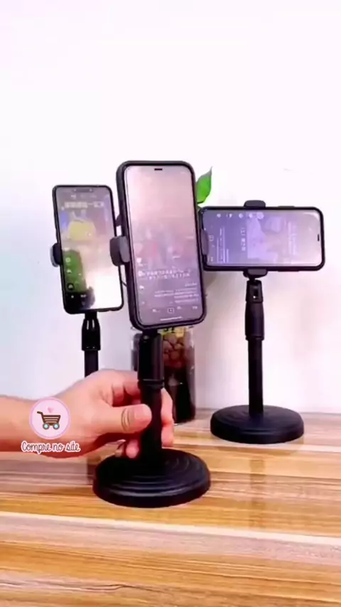 Liberte suas mãos e encontre o ângulo perfeito! ✨ Conforto e praticidade em qualquer lugar. Descrição: Cansado de segurar o celular ou de apoios improvisados? Nosso Suporte de Mesa Portátil é a solução! Perfeito para videochamadas, assistir vídeos, estudar ou seguir receitas. Compacto, estável e ajustável, ele eleva sua experiência mobile, onde quer que você esteja. Diga adeus ao cansaço e olá à conveniência! * #SuporteDeMesa * #MãosLivres * #AcessorioCelular * #MelhoreSuaLive * #kwaishop