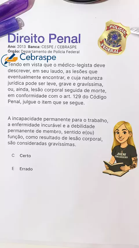 Questão de direito penal para concursos#dicas#studytok#direitopenal#questoes#concurso#pf#policiafederal#segue#estudos#concursopublico#concursopolicial